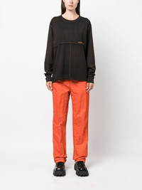 crinkled-finish straight-leg trousers Highlights - Flame red - Crinkled finish - Contrast stitching - Front button fastening - Straight leg - Two rounded pockets to the sides - Two rear patch pockets - When buying this unisex item, keep in mind that it is graded in standard men's sizing. Made in United States Composition Nylon 100% SIZE & FIT Model measurements Height 5 ft 10 in(1.78 m) Bust/Chest 33.46 in(85 cm) Hips 36.22 in(92 cm) Waist 23.22 in(59 cm) FittingInformation This piece is unisex and is designed with a straight-cut over the leg whether you usually select women's or men's sizes Made from a midweight non-stretch fabric