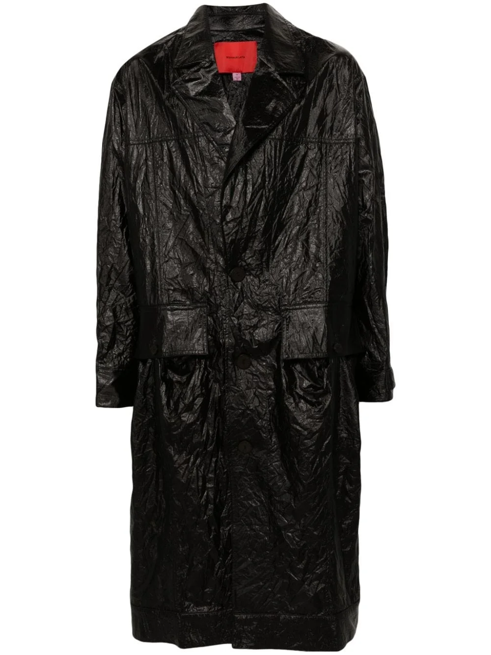 crinkled single-breasted trench coat Highlights - Black - Crinkled finish - Notched lapels - Front button fastening - Long sleeves with turn-up cuffs - Two front button-fastening jetted pockets - Straight hem - Mid-length Made in United States Composition Nylon 60%, Polyurethane 40% SIZE & FIT Model measurements Height 6 ft 2 in(1.89 m) Bust/Chest 39.76 in(101 cm) Hips 37.4 in(95 cm) Waist 29.92 in(76 cm) FittingInformation Designed to be unstructured, offering a loose fit throughout Made from a lightweight non-stretch fabric This piece fits true to size – take your usual size