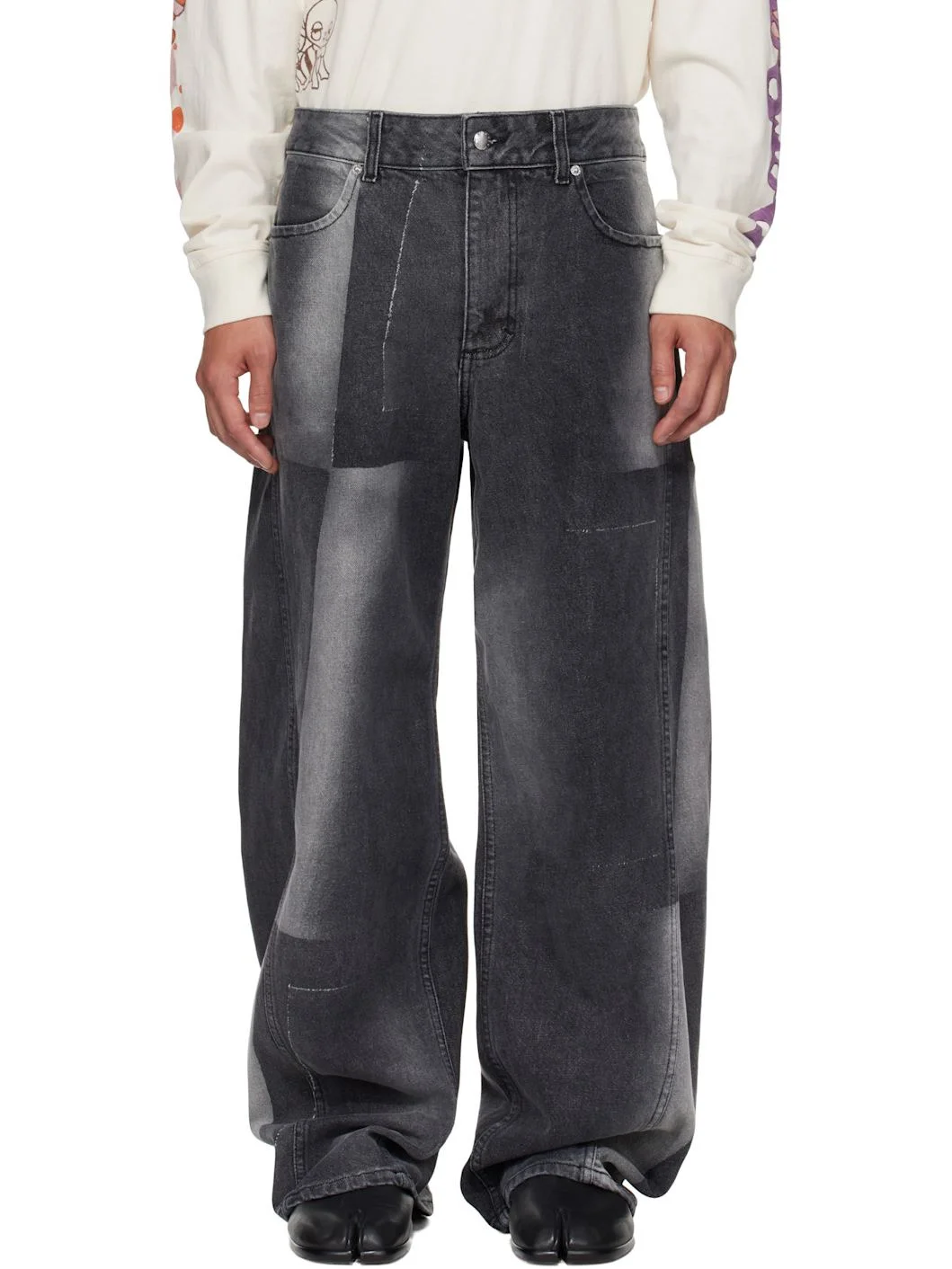 Non-stretch 14 oz denim jeans. · Hand-bleached check pattern throughout · Mid-rise · Belt loops · Four-pocket styling · Curved legs Supplier color: Sunfade 100% cotton. Made in United States 252830M186004