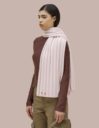 Oversized scarf in 100% merino wool in an extra wide rib. Features EL logo in red intarsia. LENGTH: 66 WIDTH: 22 100% Merino Produced in China.