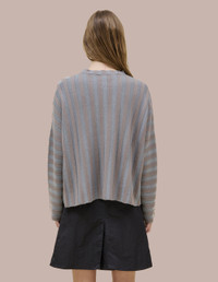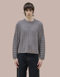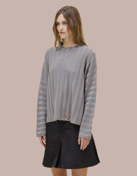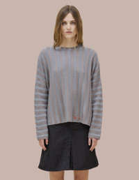 Our classic boxy crewneck dolman shaped sweater in 100% merino wool with a contrast striped wide rib. Features our new intarsia knit EL logo in red. XS: 60.3CM LENGTH, 62.2CM CHEST, 66.0CM SHOULDER, 73.0CM SLEEVE, 57.2CM BOTTOMS: 61.9CM LENGTH, 64.8CM CHEST, 68.6CM SHOULDER, 75.6CM SLEEVE, 59.7CM BOTTOMM: 63.5CM LENGTH, 67.3CM CHEST, 71.1CM SHOULDER, 78.1CM SLEEVE, 62.2CM BOTTOML: 65.1CM LENGTH, 71.1CM CHEST, 74.9CM SHOULDER, 80.6CM SLEEVE, 66.0CM BOTTOMXL: 66.7CM LENGTH, 74.3CM CHEST, 78.7CM SHOULDER, 83.2CM SLEEVE, 69.9CM BOTTOM Sarah is 5'10.5 and wears a size medium, Mitchel is 6'2.5 and wears. a size medium 100% MERINO Produced in China.