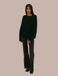 Boxy crewneck dolman shaped sweater in 100% merino wool with a black wide rib. Features our new intarsia knit EL logo. Colorway exclusive to Eckhaus Latta. Models wear size M. 100% merino wool. Produced in China.