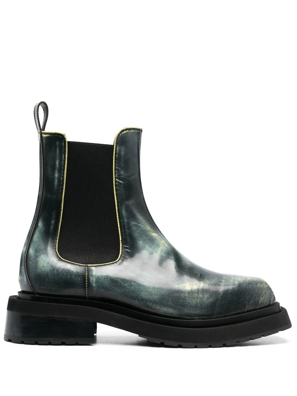 Mike elasticated side-panel boots dark green bos taurus ankle length pull-tab at the heel elasticated side panels round toe branded insole flat rubber sole Imported Composition Outer: Bos Taurus 70%, Elastane 30% Lining: Bos Taurus 100% Sole: Rubber 100% SIZE & FIT Measurement CIRCUMFERENCE 10.23 in(26 cm) HEEL 2.16 in(5.5 cm) HEIGHT 6.49 in(16.5 cm) Sole height 1.18 in(3 cm)