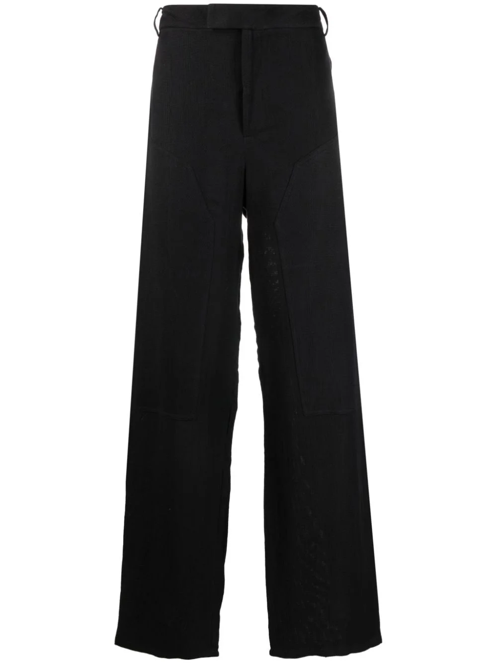 straight-leg tailored trousers Highlights - Black - Cotton-linen blend - Pique weave - Tonal stitching - Belt loops - Concealed front fastening - Straight leg - Two rear patch pockets - Long length Imported Composition Cotton 54%, Linen/Flax 46% SIZE & FIT Model measurements Height 6 ft 1 in(1.85 m) Bust/Chest 35.43 in(90 cm) Hips 35.82 in(91 cm) Waist 27.55 in(70 cm)