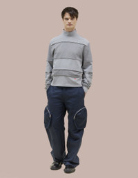 A relaxed-fit long sleeve turtleneck with a two way metal zipper along the center back. Stripes are assembled from individual strips, finished externally to echo our signature lapped seams. Red "EL" logo embroidery at the lower left abdomen. XS: 19.5 chest width, 24.5 front length, 7 neck width S: 20.5 chest width, 25.12 front length 7.25 neck width M: 21.5 chest width, 25.75 front length, 7.5 neck width L: 22.5 chest width, 26.37 front length, 7.75 neck width XL: 23.5 chest width, 27 front length, 8 neck width Models wear size medium 100% Cotton Produced in China.