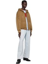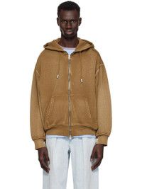 Garment-washed brushed French terry hoodie. Fading throughout. - Loose-fit - Drawstring at hood - Two-way zip closure - Patch pockets - Logo printed at shoulder - Dropped shoulders Supplier color: Bison
