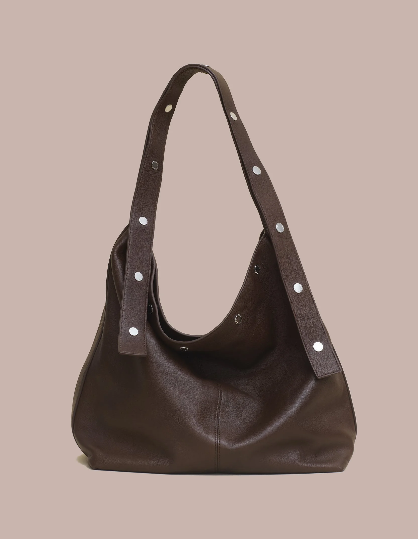 Available now for pre order, this bag will ship mid October. Expanding on the world of The Snap, The Bucket offers a more utilitarian approach. This spacious bag easily fits a laptop, book, and water bottle with room to spare. The straps snap together, allowing the user to adjust the handle drop between 7 inches and 51 inches, easily transforming from shoulder bag to cross body bag. Made in vegetable dyed Italian lambskin with a debossed logo and custom logo snaps. Internal zip pocket. H14” x W14” x D6.5” Material: Italian lambskin Produced in China