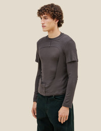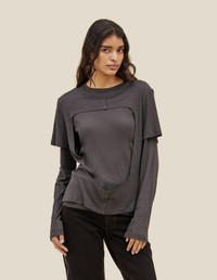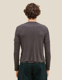 Relaxed-fit, double-layered long-sleeve T-shirt in supple fine-gauge 1x1 cotton rib, featuring raw-edge details throughout; the layers can be worn separately. Models wear size Medium 100% COTTON Produced in China
