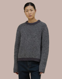 A classic crew neck silhouette constructed of a soft doublefaced knit. Has a boxy fit that hangs off the body. May is 5'10 and wears a size medium 16% YAK 15% ALPACA 58% MERINO 11% RECYCLED NYLON Produced in China.