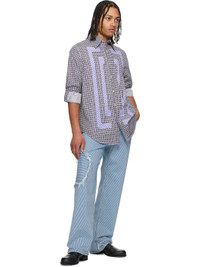 Plain-woven cotton shirt. Raw edges and graphic pattern printed throughout. · Patchwork construction · Spread collar · Button closure · Shirttail hem · Buttoned barrel cuffs · Contrast stitching in white Supplier color: Navy/White blue pink 100% cotton. Made in Spain 251470M192000