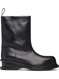 Ankle-high buffed leather boots. · Logo embossed at outer side · Pull-loop at heel collar · Leather sole with rubber injections · Heel: H2" Supplier color: Black Upper: leather. Sole: leather, rubber. Made in Portugal 252830M223001