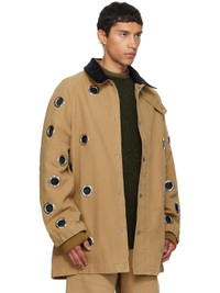 Cotton canvas jacket. · Grommets throughout · Detachable throat guard at corduroy spread collar · Concealed zip closure · Press-stud placket · Raglan sleeves · Inset rib-knit cuffs · Full logo-woven satin lining Supplier color: Beige Body: 100% cotton. Lining: 100% viscose. Made in Tunisia 252830M176004