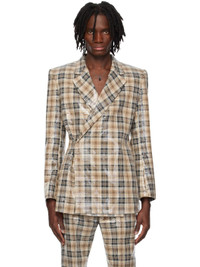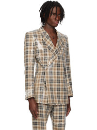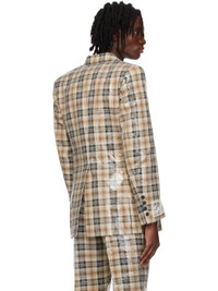 Polyester twill blazer. Check pattern and sequin detailing throughout. · Notched lapel · Hook-eye closure · Darts at waist · Seam pockets · Padded shoulders · Surgeon's cuffs · Embroidered logo patch at cuff · Central vent at back hem · Welt pockets at interior · Full logo-woven satin lining Supplier color: Tartan sequins Body: 100% polyester. Lining 1: 100% viscose. Lining 2: 100% cotton. Made in Hungary 251830M195000