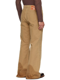 Cotton canvas jeans. · Wide-leg · Belt loops · Press-stud tab at waistband · Five-pocket styling · Zip fly · Discoloration at cuffs · Logo patch at back waistband Supplier color: Beige 100% cotton. Made in Tunisia 252830M191001