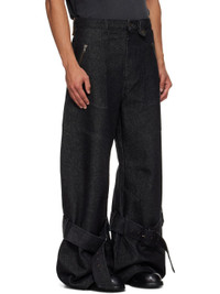 Non-stretch denim jeans. · Belt loops · Press-stud belt loop · Four-pocket styling · Zip fly · Darts at knees · Pin-buckle strap at legs · Logo patch at back waistband Supplier color: Black 100% cotton. Made in Tunisia 252830M188004