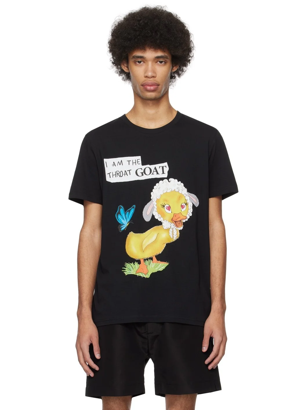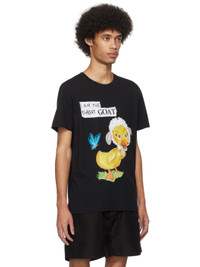 Cotton jersey T-shirt. · Rib knit crewneck · Text and graphic printed at front Supplier color: Black 100% cotton. Made in France 241830M213006