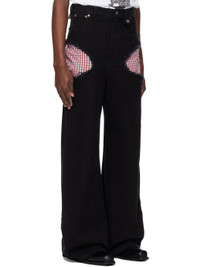 Non-stretch denim jeans. · Belt loops · Press-stud tab with logo hardware at waistband · Five-pocket styling · Zip fly · Frayed-edge cutout with exposed lining at outseams · Leather logo patch at back waistband · Check pattern at partial cotton flannel lining · Logo-engraved gunmetal-tone hardware Supplier color: Black 100% cotton. Made in Tunisia 251830M186009