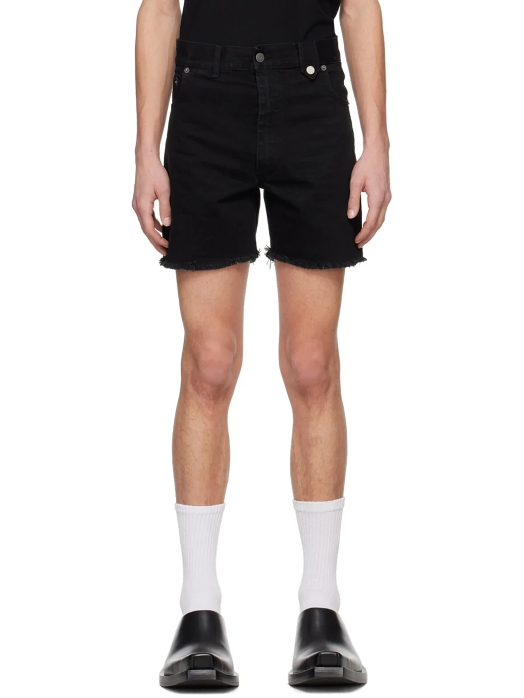 Non-stretch denim shorts. Fading throughout. · Belt loops · Five-pocket styling · Zip-fly · Press-stud tab at front waistband · Frayed edge at cuffs · Logo patch at back waistband Supplier color: Black stonewashed 100% cotton. Made in Serbia 241830M193006