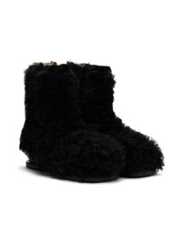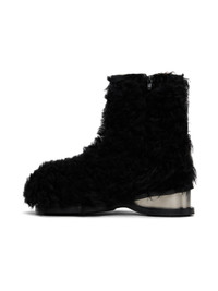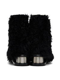 Ankle-high dyed shearling boots in black. · Square toe · Zip closure at inner side · Buffed leather lining · Inset metal wedge heel at stacked midsole · Treaded rubber sole · Heel: H2.25" Supplier color: Black Upper: sheepskin. Sole: rubber. Made in Portugal 242830M228001