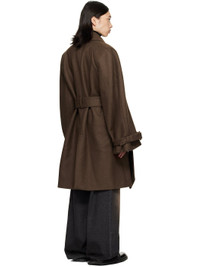 Wool-blend melton coat. · Spread collar · Button closure · Welt pockets at front · Belt loops and detachable self-tie belt at waist · Raglan sleeves · Pin-buckle strap at cuffs · Central vent at back hem · Welt pockets at interior · Full satin lining Supplier color: Brown Body: 70% wool, 30% polyester. Trim: 100% cotton. Lining: 100% viscose. Made in Hungary 252830M176006