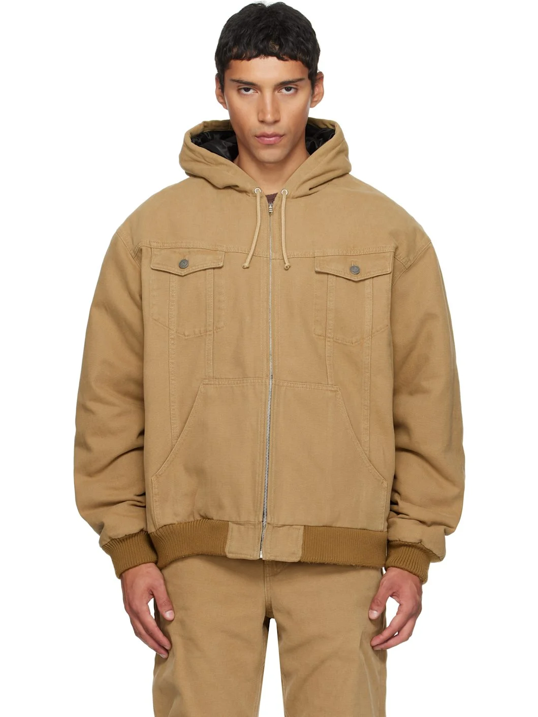 Cotton canvas jacket. · Drawstring at hood · Zip closure · Flap pockets at chest · Patch pockets at waist · Rib-knit hem and cuffs · Dropped shoulders · Zip and patch pocket at interior · Full logo-woven satin lining Supplier color: Beige Body 1: 100% cotton. Lining: 100% viscose. Made in Tunisia 252830M180007