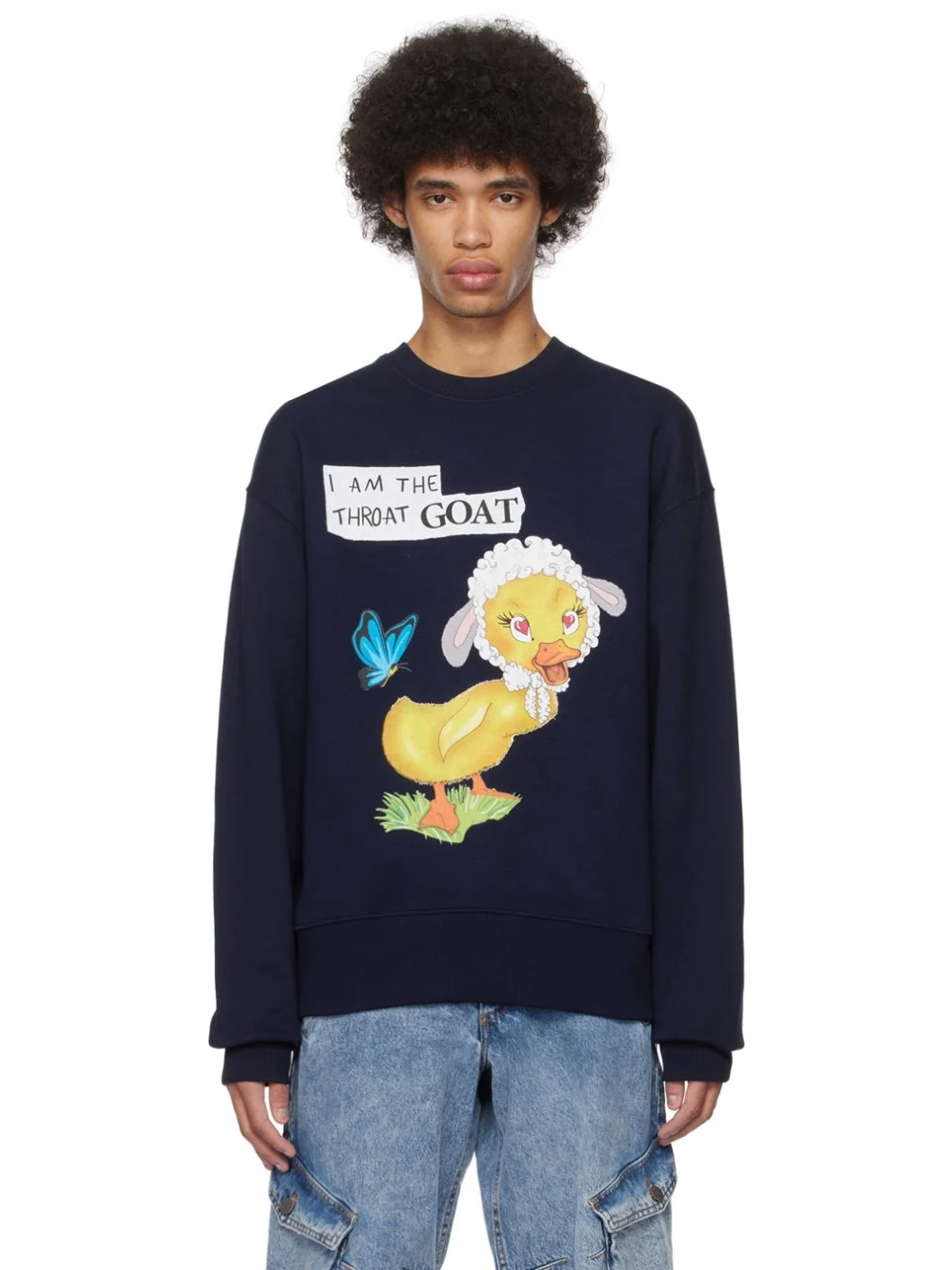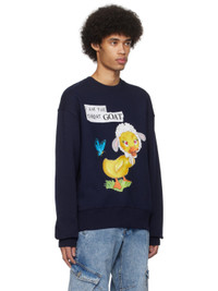 Cotton fleece sweatshirt. · Rib knit crewneck, hem, and cuffs · Text and graphic printed at front · Dropped shoulders Supplier color: Dark blue 100% cotton. Made in France 241830M204002