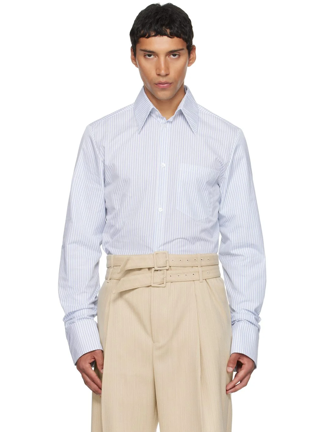 Cotton poplin shirt. · Stripes throughout · Pointed collar · Button closure · Patch pocket at chest · Shirttail hem · Layered sleeves · Button barrel cuffs Supplier color: Stripes 100% cotton. Made in Hungary 252830M192007