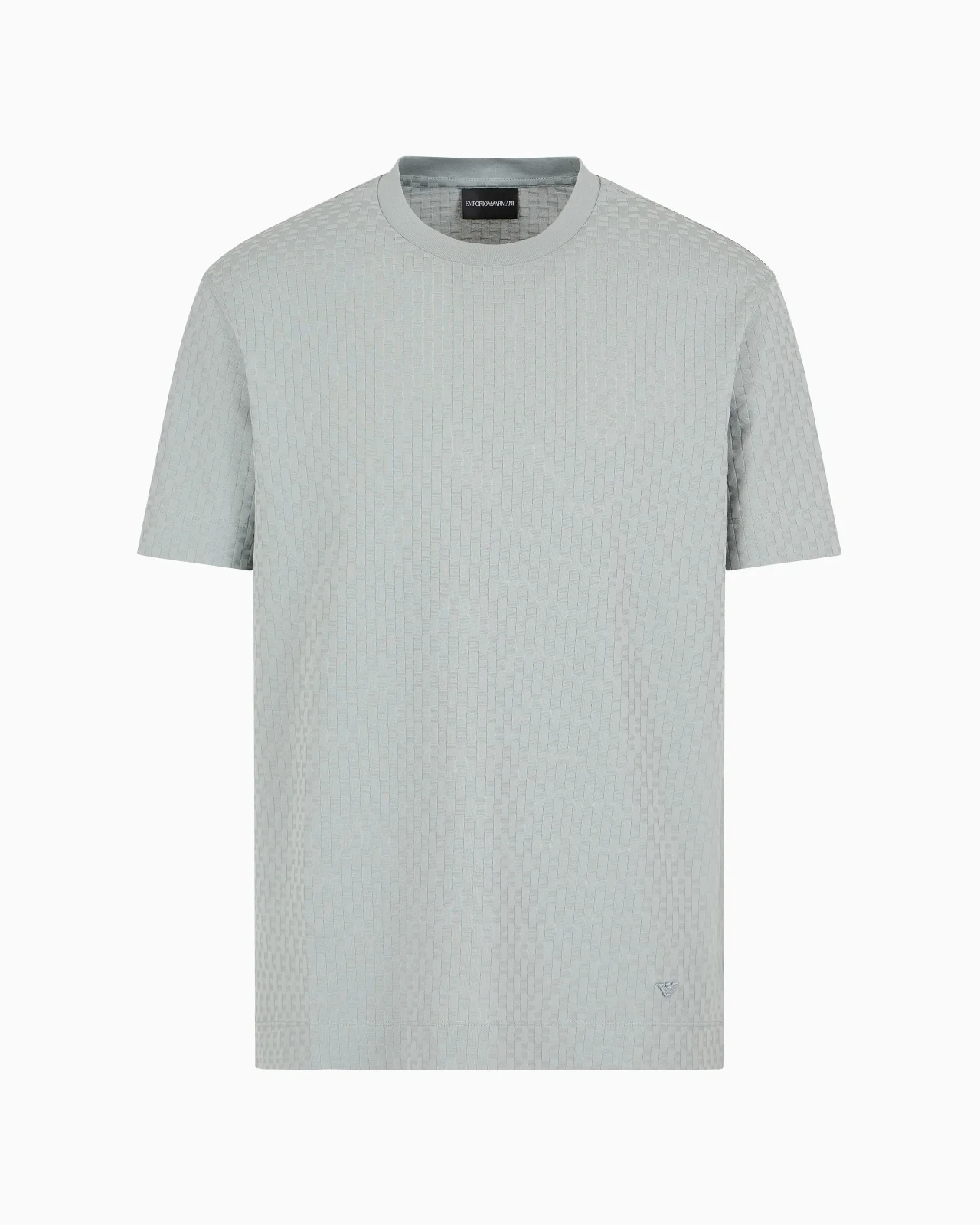 Regular-fit crew-neck pure cotton-jersey crew-neck T-shirt featuring an all-over jacquard pattern that creates an exclusive 3D-effect embossed motif, adding prestige and personality to the style. By choosing this product you are helping to support the Better Cotton Initiative: The BCI uses a tracking system that allows Better Cotton to replace or be blended with conventional cotton. Product Code: 6D1TT71JGYZ10546 Details Composition 100% Cotton Regular fit Jersey Embossed jacquard Crew neck Short sleeves Micro-eagle embroidered at the left hem Fitting Regular fit The model is 188 cm tall and is wearing size 48/M (Italian Size)