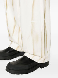 Cotton drill trousers featuring a pattern with vertical hand-made stripes. The piece belongs to this season’s Emporio Armani Sustainability Values Capsule Collection, which, as the “Welcome to the Jungle” slogan on various pieces suggests, takes inspiration from the jungle and all its colours and elements. An extremely colourful palette, inspired by butterfly wings, approaches the hues of leaves and trees thanks to different shades of green and brown, and is accentuated by particularly visual and eye-catching prints and patterns. Each individual capsule collection item contains organic, recycled or other fibres and is part of a selection of clothing and accessories with wide appeal that are the result of a research and development project and a clear commitment to reducing the impact on the environment in line with the Armani Group’s sustainability strategy. Product Code: 3D1P7E1K30Z1F510 Details Composition 100% Cotton Drill Collection pattern Waist with belt loops Zip and button closure Side inseam pockets Back patch pockets Fitting The model is 188 cm tall and is wearing size 48/M (Italian Size)