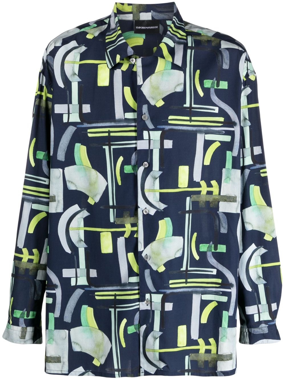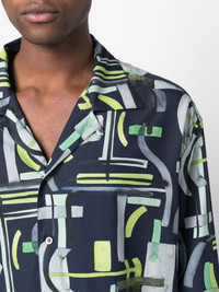 abstract-print long-sleeved shirt Highlights - Blue/multicolour - Cotton-lyocell blend - Abstract pattern print - Camp collar - Front button fastening - Long sleeves - Buttoned cuffs - This item contains at least 50% materials which are certified or widely recognised as having a lower environmental impact through production and/or manufacturing processes that reduce water consumption and the use of harmful chemicals, or re-use by-products of the production process. - Learn more about what makes a product conscious on our conscious criteria page Imported Composition Lyocell 70%, Cotton 30% SIZE & FIT Model measurements Height 6 ft 2 in(1.88 m) Bust/Chest 37.4 in(95 cm) Hips 36.22 in(92 cm) Waist 28.34 in(72 cm) FittingInformation Designed to be unstructured, offering a loose fit throughout Made from a midweight non-stretch fabric This piece fits true to size – take your usual size