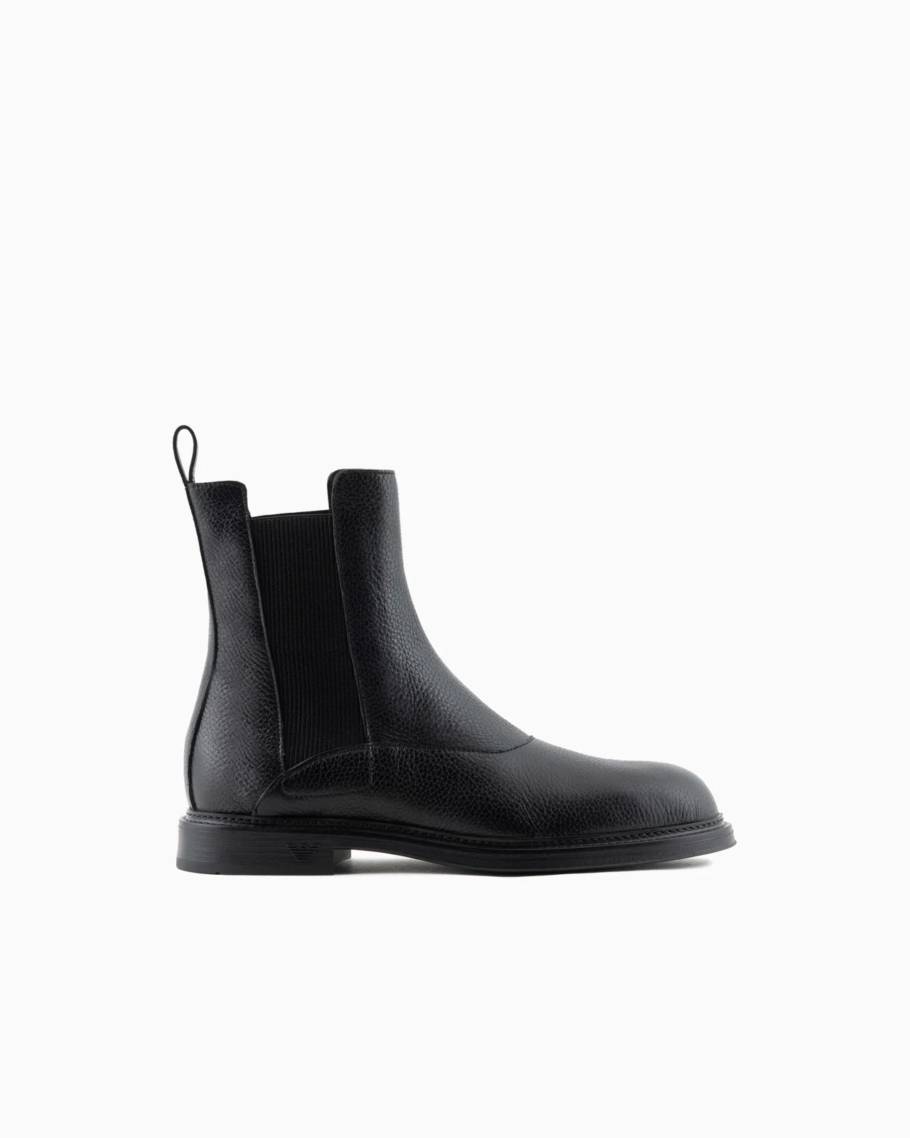 Leather Chelsea ankle boots with a grained finish. A collection of high-quality Made-in-Italy formal footwear featuring a logo on the outer sole: ideal for completing outfits with practical elegance, a truly versatile style dedicated to the modern businessman. Product Code: X4M389XF583100002 Details Composition 100% Calf-skin leather Pebbled leather Rounded toe Elastic insert Pull tab at the back Rubber soles Made in Italy