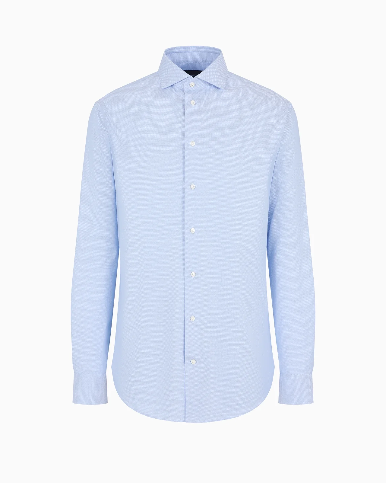 Pure cotton shirt with classic collar. The armure weave creates a two-tone micro-pattern that extends over the entire garment. Sophisticated textures that bring a unique touch to even your wardrobe’s most basic styles. Product Code: EM000192TE109561F9025 Details Composition 100% Cotton Armure weave Classic collar Front buttoning Long sleeves Rounded cuffs Back yoke Fitting The model is 188 cm tall and is wearing size 40