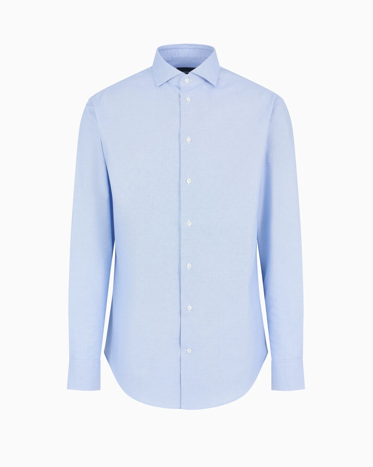 Pure cotton shirt with classic collar. The armure weave creates a two-tone micro-pattern that extends over the entire garment. Sophisticated textures that bring a unique touch to even your wardrobe’s most basic styles. Product Code: EM000192TE109561FB047 Details Composition 100% Cotton Armure weave Classic collar Front buttoning Long sleeves Rounded cuffs Back yoke Fitting The model is 188 cm tall and is wearing size 40