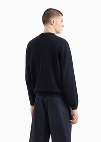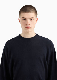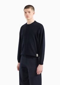 Crew-neck jumper made from a plain-knit wool and cashmere blend with a logo patch at the bottom left. The item belongs to this season’s Armani Sustainability Values Capsule, inspired by the concept of the ocean as a place of adventure and fantasy to be explored even in the winter cold. Marine subjects and animals or geographic coordinates blend with shades of Atlantic blue, lit up by the brightness of white and yellow. There is a selection for kids too in which each individual capsule collection item contains sustainable fibres, affirming Emporio Armani’s commitment and constant attention to the environment, in line with the Group’s Sustainability strategy. Product Code: 8N1M201M6QZ10920 Details Composition 40% Wool 25% Viscose 25% Polyamide 10% Cashmere Plain knit Crew neck Long sleeves Rib-knit cuffs and hem Logo patch Fitting The model is 188 cm tall and is wearing size 48/M (Italian Size)