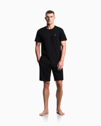 Cotton-jersey pyjamas made of natural fibres from organic farming composed of a crew-neck T-shirt and Bermuda shorts with an elasticated logo waistband. Eagle logo on chest. Fabric: 95% organically grown cotton Stretch jersey 2-piece pyjamas Crew-neck T-shirt Front micro eagle Elasticated-waist Bermuda shorts Product Code: EM000400AF10776MC108