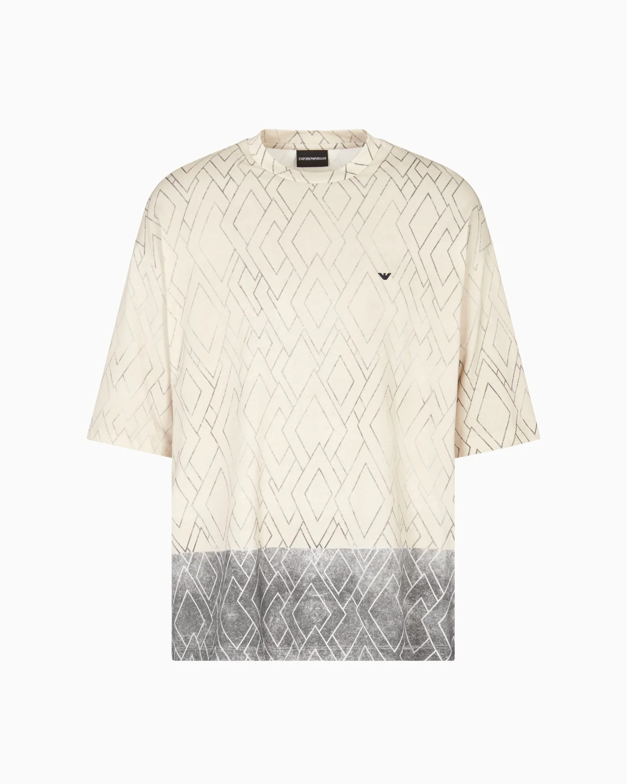 Cotton jersey crew-neck T-shirt. Featuring an all-over print and contrasting two-tone effect on the hem. The rubberised iconic eagle on the chest completes the piece with distinctive flair. Jersey All-over print Crew neck Rubberised micro eagle on the chest Product Code: EM002964AF13717FB071