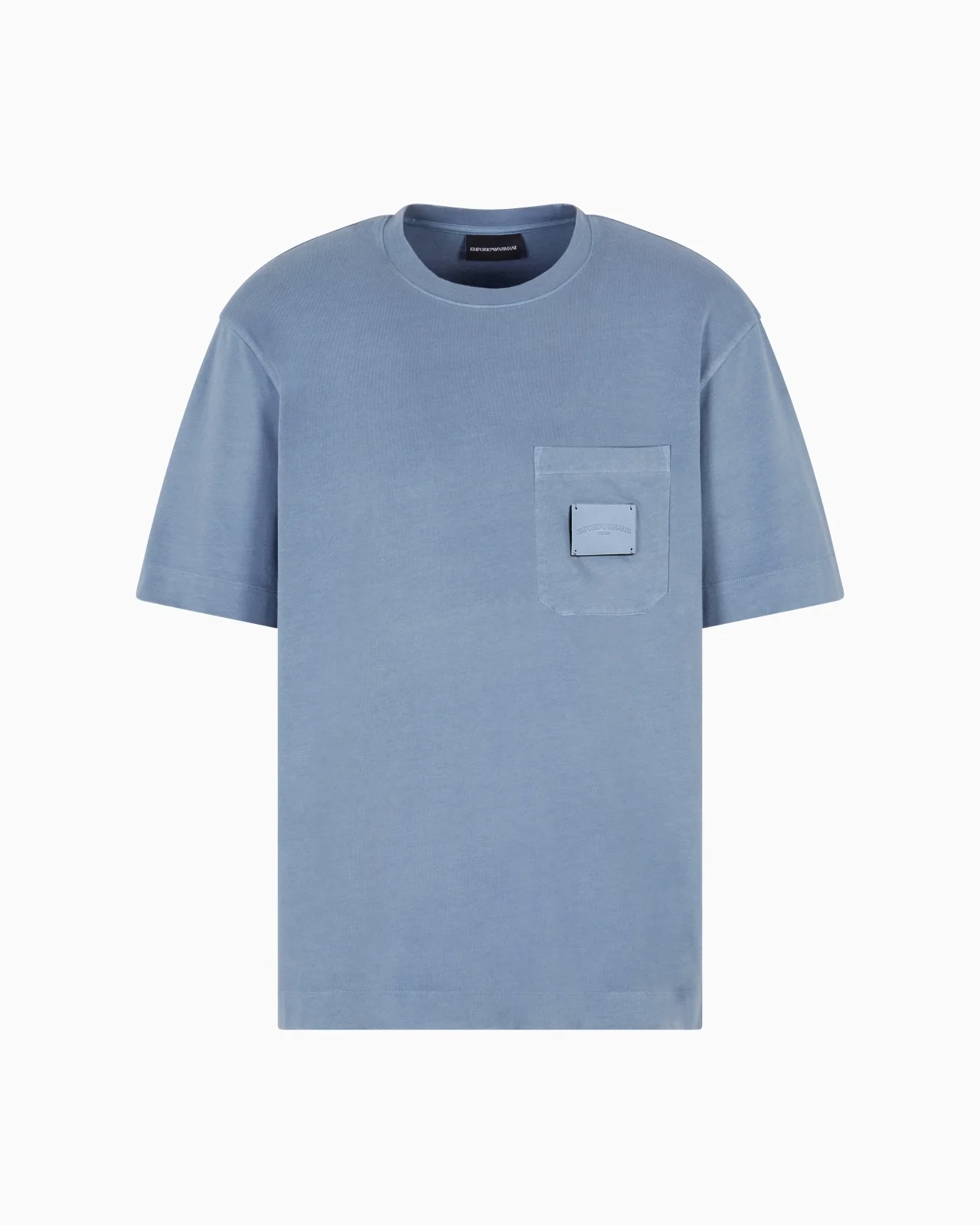 Cotton-jersey, crew-neck T-shirt. The garment features a patch pocket on the chest, enhanced by a genuine leather patch with an embossed Emporio Armani logo. Regular fit Jersey Crew neck Short sleeves Patch pocket Genuine leather logo patch Product Code: EM002722AF13715U8093