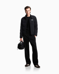 Joggers with an internal drawstring at the waist, made of bonded fabric with cosy jersey for the outside and warm, plush chenille on the inside. The metal EA logo plate completes the piece with understated elegance. Jersey Elasticated waist Inner drawstring Side pockets Back welt pockets EA back logo plate Product Code: EM002867AF17547UC001