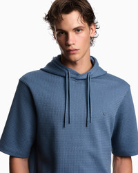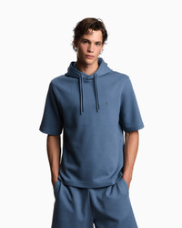 Short-sleeved sweatshirt with drawstring hood. Made from Lyocell-blend jersey. Lyocell is a semi-synthetic fibre that has an exceptionally low impact on the environment. It is derived from eucalyptus trees and is renowned for being very durable, breathable, absorbent and wrinkle-proof. The jacquard pattern creates an original all-over motif, adding prestige and personality to the style. This refined style can be worn anywhere and with anything. Jersey Jacquard Drawstring hood Short sleeves Micro-eagle embroidery on the chest Product Code: EM003143AF13700F9073