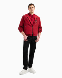 Polo shirt featuring collection embroidery made from a cotton and Lyocell blend jersey. Lyocell is a semi-synthetic fibre that has an exceptionally low impact on the environment. It is derived from eucalyptus leaves and is renowned for being moisture-wicking, durable, breathable and wrinkle-proof. The item belongs to the Lunar New Year capsule collection, whose standout feature is the snake, a symbol of wisdom, stability and intuition. Tradition and superstition merge with the roots of East Asia, creating auspicious influences and symbols, characterised by luxurious embroidery on a black and red background, brightened with luminous touches of gold. Jersey Polo-shirt collar Partial button opening Short sleeves Collection embroidery Product Code: EM001704AF10017M5037