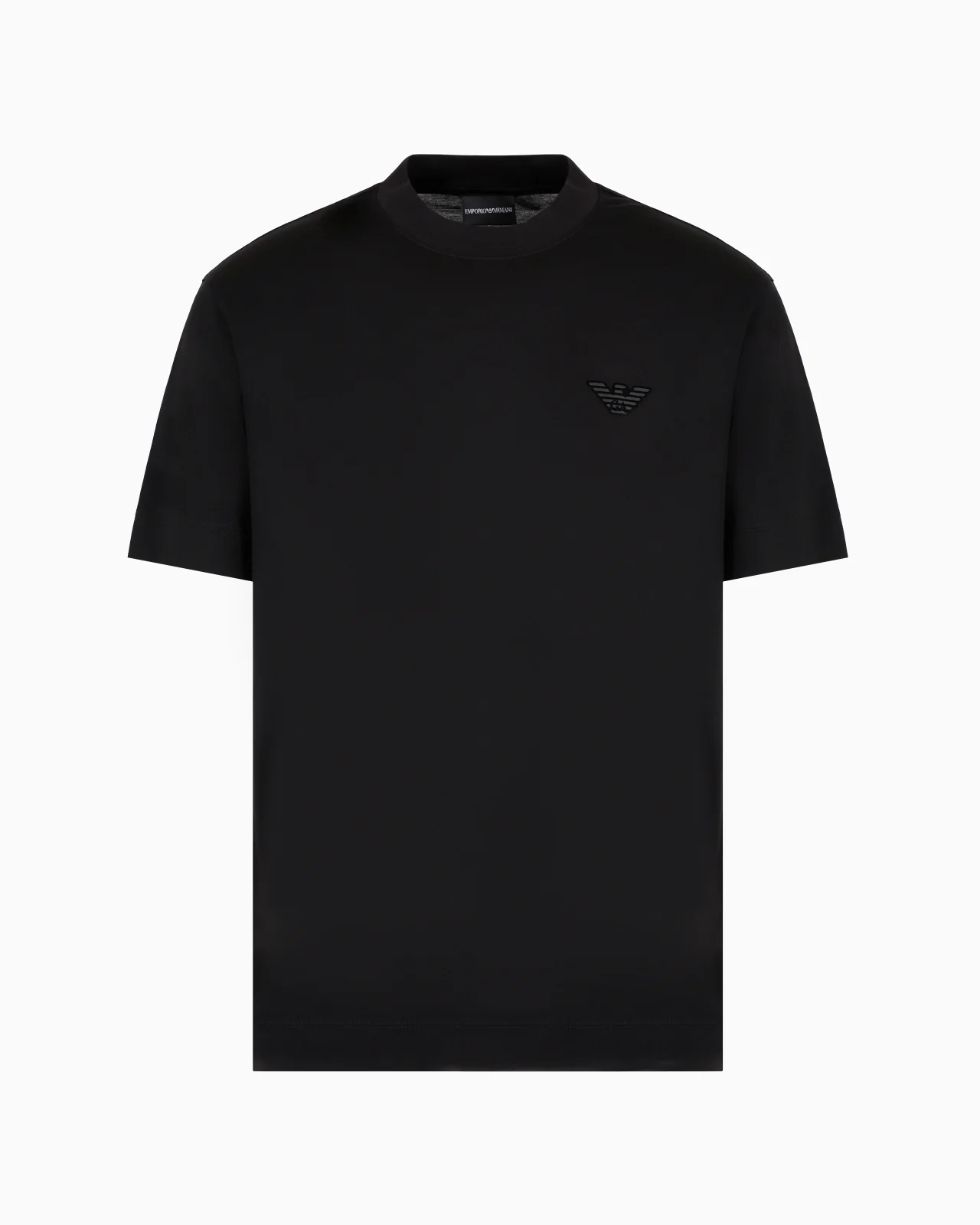Crew-neck T-shirt with flocked logo trim. Made from a jersey in a blend of cotton and Lyocell, a semi-synthetic fibre that has an exceptionally low impact on the environment. It is derived from eucalyptus trees and is renowned for being moisture-wicking, durable, breathable and wrinkle-proof. Product Code: 6D1TR31JOSZ10036 Details Composition 70% Lyocell 30% Cotton Regular fit Jersey Crew neck Short sleeves Flocked logo Fitting Regular fit The model is 188 cm tall and is wearing size 48/M (Italian Size)