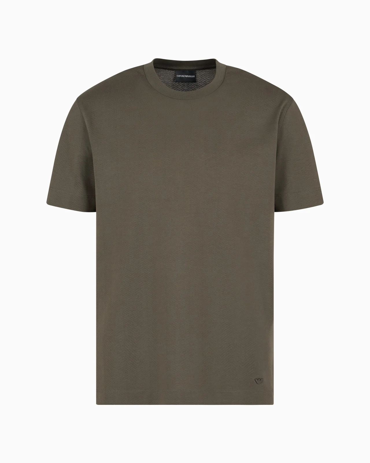 Regular-fit crew-neck pure cotton-jersey crew-neck T-shirt featuring an all-over jacquard pattern that creates an exclusive 3D-effect embossed motif, adding prestige and personality to the style. By choosing this product you are helping to support the Better Cotton Initiative: The BCI uses a tracking system that allows Better Cotton to replace or be blended with conventional cotton. Product Code: 6D1TT71JGYZ10667 Details Composition 100% Cotton Regular fit Jersey Embossed jacquard Crew neck Short sleeves Micro-eagle embroidered at the left hem Fitting Regular fit The model is 188 cm tall and is wearing size 48/M (Italian Size)