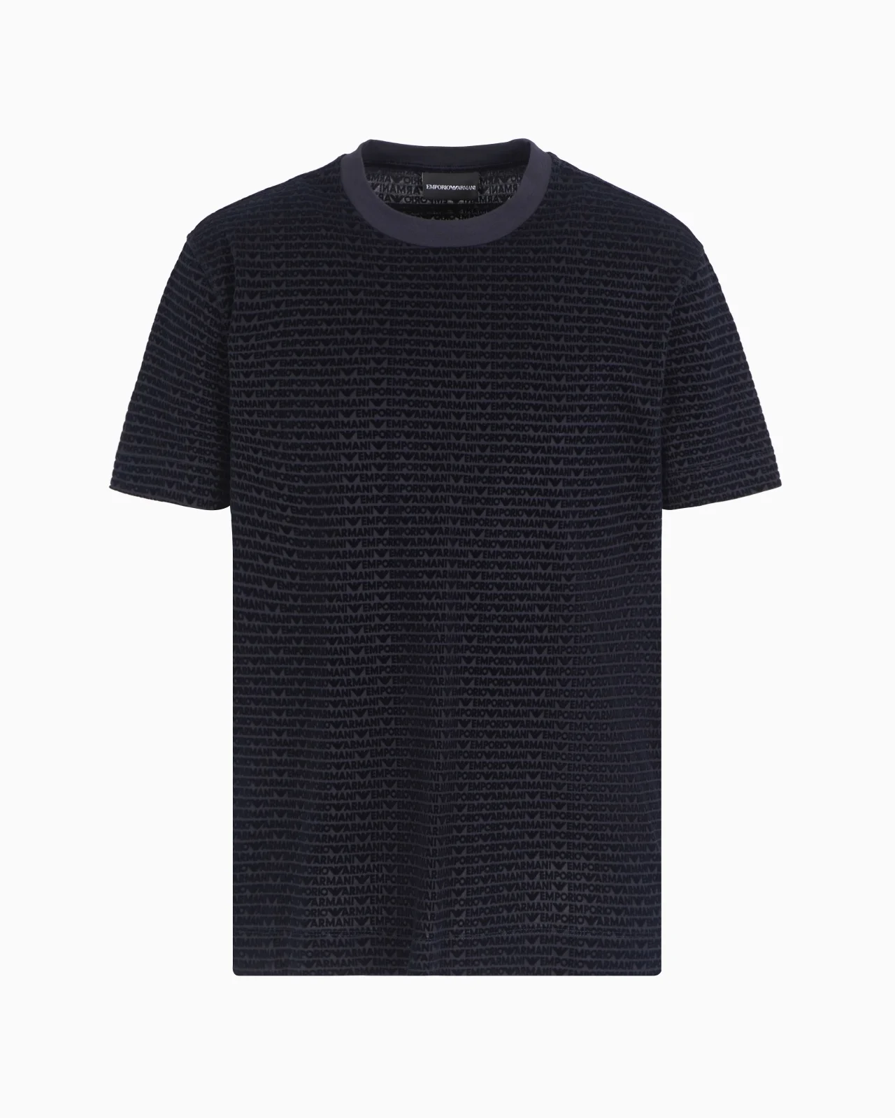 Regular-fit, crew-neck T-shirt embellished all-over with a very dense pattern featuring the logo lettering in a flock print, a technique that provides a unique, velvety, embossed look. Made from a jersey in a blend of cotton and Lyocell, a semi-synthetic fibre that has an exceptionally low impact on the environment. It is derived from eucalyptus trees and is renowned for being moisture-wicking, durable, breathable and wrinkle-proof. Regular fit Jersey All-over flock print Crew neck Short sleeves Product Code: EM001288AF10017FB229
