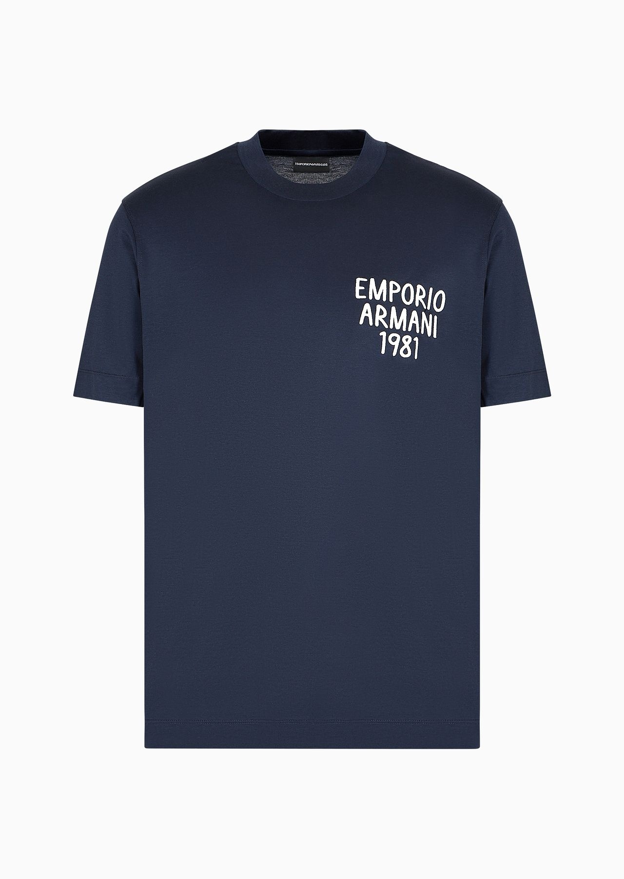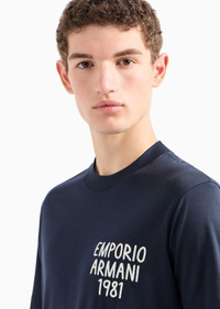 Crew-neck T-shirt featuring distinctive logo embroidery defined by two different patterns: embossed gradient embroidery for the centre logo or a contrasting embroidered logo on the chest. Made from a jersey blend from cotton and Lyocell, a semi-synthetic fibre that has an exceptionally low impact on the environment, that is derived from eucalyptus trees and is renowned for being very durable, breathable, absorbent, and wrinkle-proof. Product Code: 3D1TA21JUVZ109R4 Details Composition 70% Lyocell 30% Cotton Regular fit Jersey Crew neck Short sleeves Logo embroidery Fitting Regular fit The model is 188 cm tall and is wearing size 48/M (Italian Size)