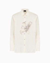Classic collar shirt featuring a front flower print. The graphic design and embroidery that embellish this part of the collection convey an immediate feeling of lightness, evoking delicate shapes and subtle figures, as if sculpted by the wind on sand dunes. Made from a formal viscose and Lyocell blend fabric. Lyocell is a semi-synthetic fibre that has an exceptionally low impact on the environment. It is derived from eucalyptus trees and is renowned for being moisture-wicking, durable, breathable and wrinkle-proof. Formal fabric Classic collar Front buttoning Collection print Long sleeves Angled cuffs Back yoke with darts Product Code: EM001543AF14214F0092