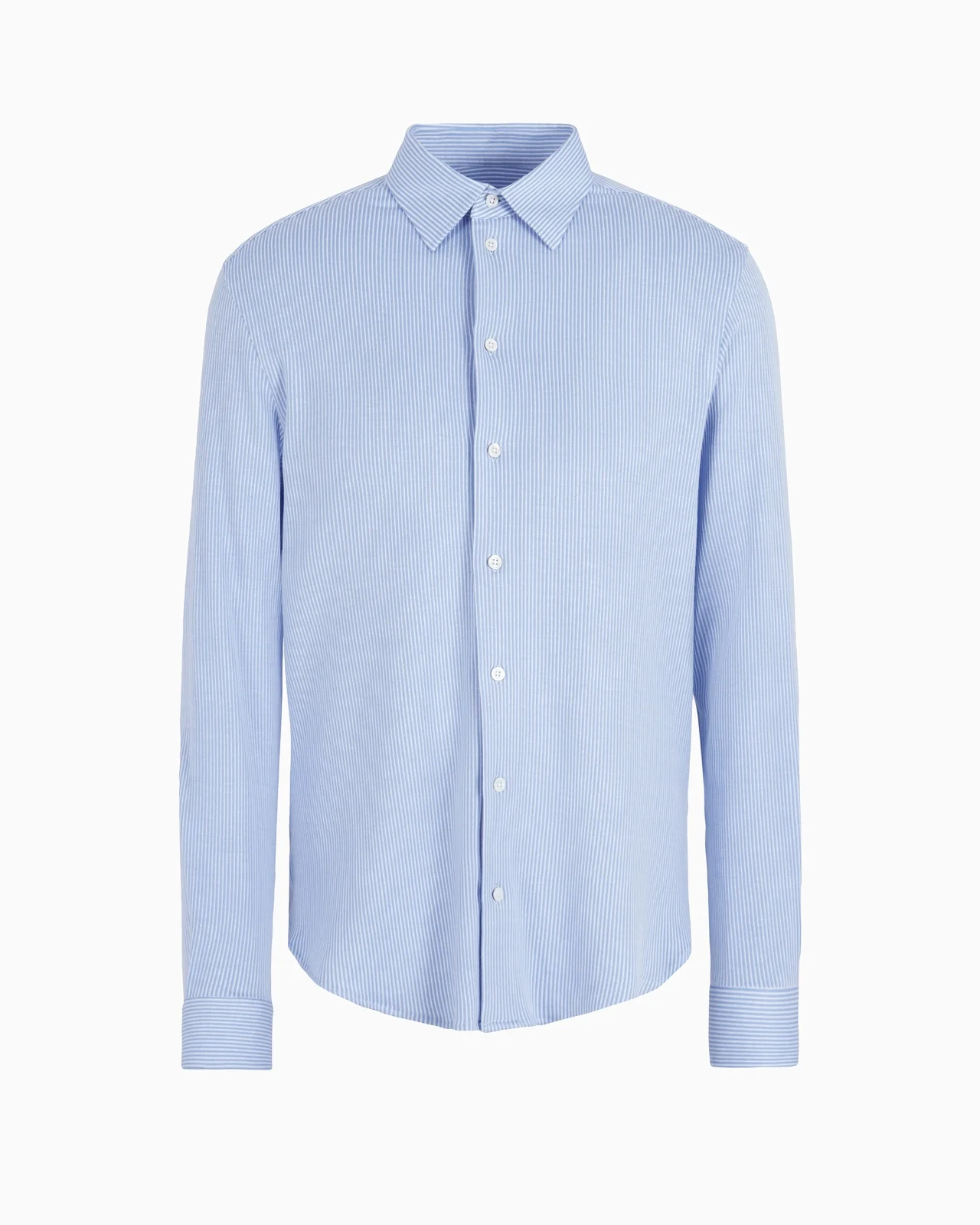 Classic-collar shirt made from a cotton and Lyocell blend jersey. Lyocell is a semi-synthetic fibre that has an exceptionally low impact on the environment. It is derived from eucalyptus trees and is renowned for being very durable, breathable, moisture-wicking, and wrinkle-proof. Product Code: EM000099TE115771F9021 Details Composition 58% Cotton 42% Lyocell Jersey Striped Classic collar Long sleeves Rounded cuffs with buttons Back yoke Fitting The model is 188 cm tall and is wearing size 40