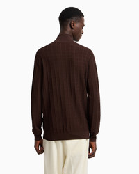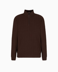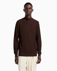 Jumper with a mock neck and practical partial zip. Made of a cosy viscose knit fabric that creates a slightly embossed 3D-effect check motif. Fabric: 85% viscose from responsible forestry Fineness: 16 Knit Checked Mock neck Partial zip Rib-knit cuffs and hem Micro eagle embroidery on the left hem Product Code: EM003501AF14853U6032
