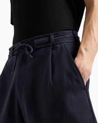 Bermuda shorts with belt loops at the waist, darts and front tubular drawstring. Made of peachskin pure Lyocell, a semi-synthetic fibre that has an exceptionally low impact on the environment. It is derived from eucalyptus trees and is renowned for being moisture-wicking, durable and breathable. Peachskin fabric Drawstring waist with belt loops Front pleats Zip and button closure Side pockets Back welt pockets Product Code: 6D1P7R1K65Z0922