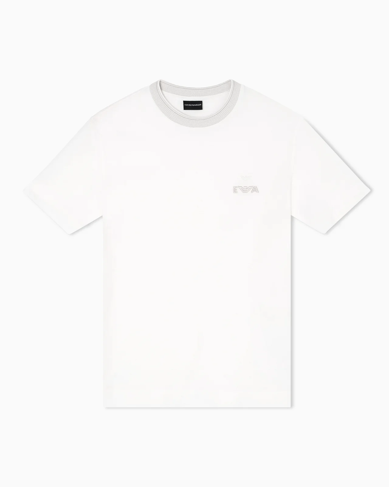 Cotton pique T-shirt with trimmed crew neck. The contrasting super-embossed, embroidered EA logo completes and distinguishes the garment. Pique Trimmed crew neck Logo embroidery Short sleeves Product Code: EM002965AF12955U0003