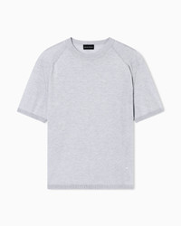 Crew-neck jumper made in a plain knit. The style is made from a Lyocell blend, a semi-synthetic fibre that has an exceptionally low impact on the environment. It is derived from eucalyptus trees and is renowned for being very durable, breathable, absorbent and wrinkle-proof. Fineness: 14 Plain knit Crew neck Short sleeves Rib-knit cuffs and hem Micro eagle embroidered on the left hem Product Code: EM003384AF18995O8005